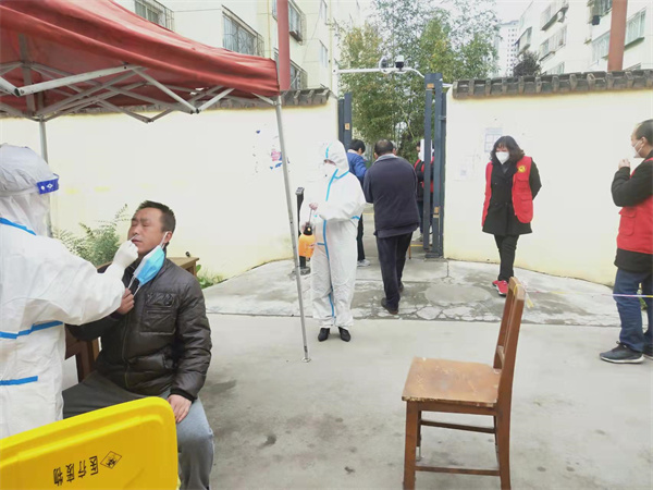 大城街道進步巷社區黨委書記陳芳告訴記者:「核酸檢測我們主要採取的是分樓棟、分小區、分批次帶我們的居民到檢測點進行檢測的這樣一種方式,不僅檢測效率比較高,安全係數也高。」