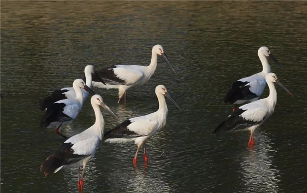 東方白鸛屬於大型涉禽,體態優美,是國家一級保護動物,是全球只有幾千隻的瀕危物種,素有「鳥類大熊貓」之稱。它們喜歡在沼澤、濕地或塘邊涉水覓食,主要以小魚小蝦等為食,對於棲息地選擇有着嚴苛的要求。
