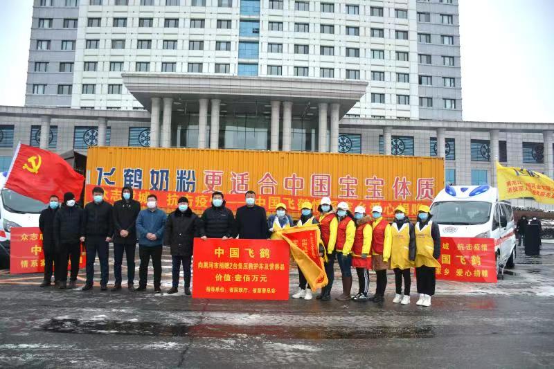 疫情無情,人有情。地處祖國邊陲的黑龍江省黑河市出現了新冠肺炎疫情反彈,疫情的動態時刻牽動着從家鄉走出來的飛鶴。中國飛鶴原生態牧業董事長趙洪亮代表中國飛鶴向黑河市捐贈價值100萬元的2台負壓救護車和飛鶴營養品,用實際行動支持黑河市戰勝疫情。
