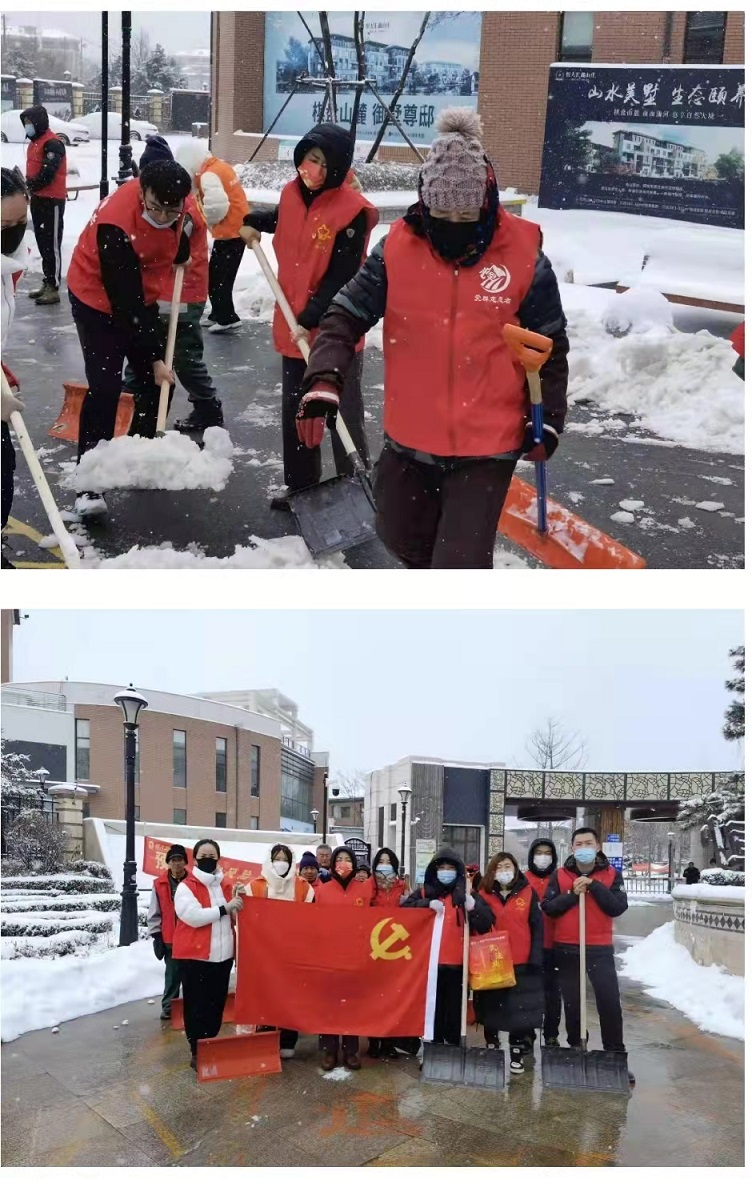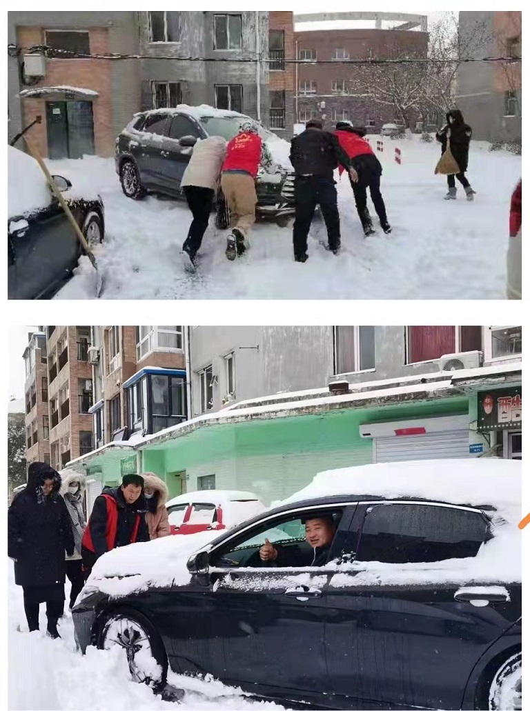 道義街道組織機關幹部、社區工作人員及「小紅星」盛京使者共100餘人清理轄區內積雪。溝子沿村對暴雪後坍塌的房屋進行搶險處理,疏散安置村民,清理積雪並對房屋進行加固。地坤湖社區第一時間清理疫苗接種方艙積雪,打通疫苗接種通道,為疫情防護之路清除阻礙。北苑社區轄區內公租房小區老人、殘疾人數量多,社區工作者們全員出動清理園區積雪,保障居民出行安全。吾悅社區組織社區工作者對深陷積雪中無法行進的車輛開展援助,解救被困車輛與居民。