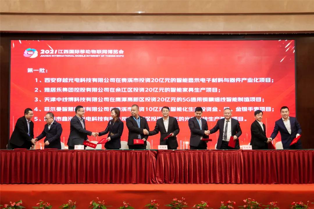 11月9日,在2021江西國際移動物聯網博覽會之際,鷹潭市物聯網產融對接會成功舉辦。鷹潭市委書記黃喜忠出席並見證項目簽約。市政府市長張子建致推介辭。江西省地方金融監管局副局長駱小林,省證監局副局長周軍,農發行江西省分行副行長鍾曉成,中行江西省分行副行長馬健雄,國開行江西省分行副行長黃志鋼,農行江西省分行副行長王磊,農商行江西省聯社首席信息官侯志紅;市領導王亞青、褚小濤、席志新;浙江水晶光電股份有限公司總經理王震宇,中基集團副總經理沈璐等行業知名企業家代表,共240餘人出席。
