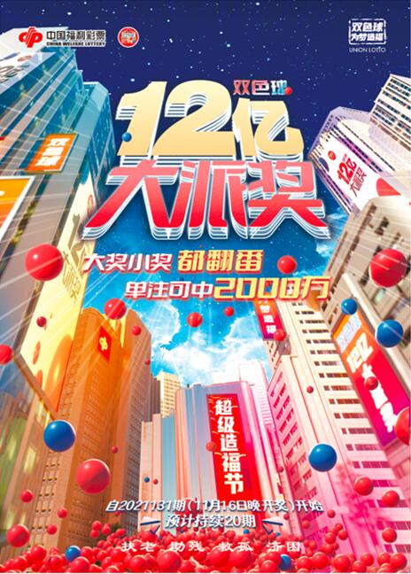 中國福利彩票「雙色球」遊戲自2003年2月16日上市以來,已陪伴廣大公眾走過了18個春秋,為需要幫助的人帶去了溫暖和關愛,為人們的生活增添了驚喜和快樂,也讓眾多購彩者夢想成真。為回饋廣大公眾和購彩者的支持,中國福利彩票「雙色球」12億元大派獎再度開啟,一場年末盛宴即將開始。