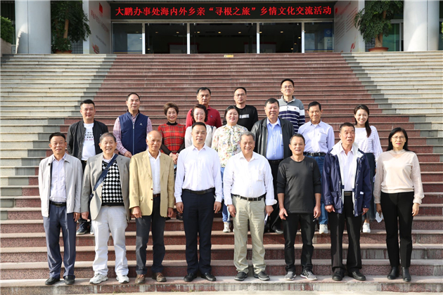 展僑鄉魅力、聚大鵬鄉情。11月11日,深圳市大鵬新區大鵬辦事處舉行「尋根之旅」鄉情文化交流活動,組織近20名僑界鄉親、歸僑僑眷代表人士在家鄉調研考察。共同探討新時代僑務工作的新模式,進一步凝聚共識,參會華僑積極為大鵬經濟、社會、文化建設建言獻策,辦事處相關領導與僑界人士進行座談交流。