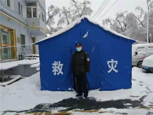 在封控小區執勤中,他忍受住腰頸病痛的折磨,嚴守工作紀律,主動為群眾排憂解難,巡邏宣傳、清冰除雪,他樣樣在先,真正將「我為群眾辦實事」落到了實際行動中。至今,臧濤沒有休息過一天,一直與同事們守護着群眾的生命安全和身體健康。