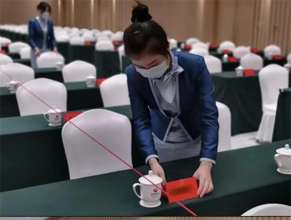 在省人民會堂,該校6名學生負責會場佈置、接待、茶水服務等工作。服務中,他們精神飽滿,有條不紊;遇事沉着冷靜,展現出良好的心理素質和專業技能。