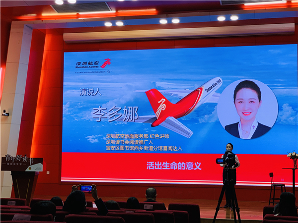 「因為打開了一本本書,我打開了面向未來的新世界。」深航優秀青年代表、深圳讀書會閱讀推廣人李多娜分享了自己在深圳拼搏奮鬥的故事。她感恩於深圳濃厚的閱讀文化,感動於深圳「贈人玫瑰,手有餘香」的志願文化,在深圳找尋到了活出生命最美好的意義。