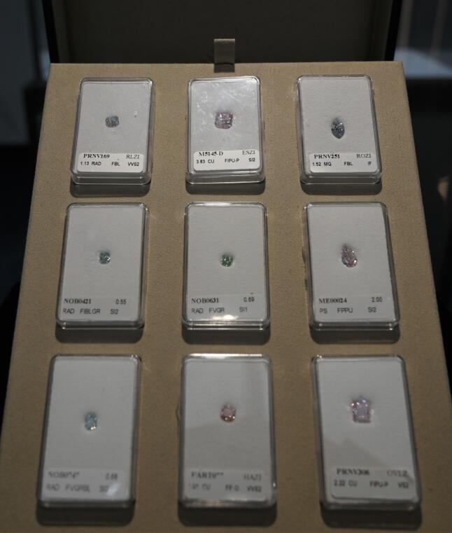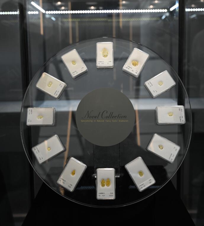 「氮元素的吸收造就了明艷的黃色,自然輻照賦予綠鑽的璀璨,偶然的晶格扭曲使得珍稀的紅鑽得以面世......」深圳國際鑽石展的展會現場工作人員正在向參展嘉賓們解說到。據記者了解,在此次展會,露芙鑽石展示了100餘件來自世界各地的彩鑽臻品,其中不乏首次在中國展出的超大克拉彩鑽。鑽石展現場,大克拉彩鑽表現不俗,交相輝映,流光溢彩,美若夢境。其中,全球同類中最大的54.36克拉的花式深棕粉紅色橙色鑽石——「琥珀之夜」更是秒殺菲林。它色彩濃郁,通體剔透,吸引現場觀眾駐足,細細品味。