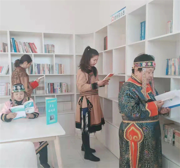 「農家書屋+民族特色」頌經典奮鬥歷程。十八站鄉作為鄂倫春族聚居地,結合本鄉實際,在「鄂鄉文苑」農家書屋的「非遺文化實踐區」多次開展了刺繡、雕刻、樺樹皮等鄂族傳統民族手工藝品製作培訓活動,鄂族村民把對鄂族傳統手工藝的熱愛,也體現在了閱讀上,閒暇時,村民也會手捧圖書專注的進行閱讀,「鄂鄉文苑」農家書屋充分發揮了特色民族文化優勢,推動農家書屋改革與民族文化融合,擴大了農家書屋受眾面。