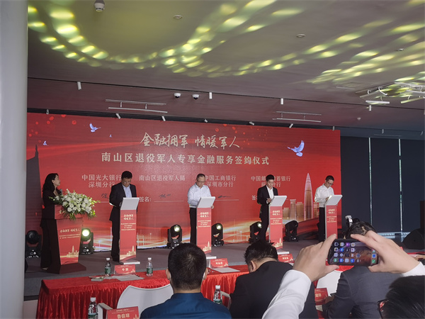 頂圖:南山區退役軍人專享金融服務簽約與捐贈儀式