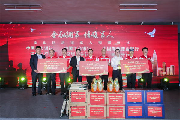 活動第一階段,南山區退役軍人事務局副局長陳華巍與中國工商銀行深圳分行機構金融業務部總經理肖東良、中國光大銀行深圳分行副行長宋綱、中國郵政儲蓄銀行前海分行副行長葉永凌等3位代表簽訂了為南山退役軍人提供個人性、多元化、綜合性金融服務的戰略協議。同時,3家銀行共為南山區退役軍人重點優撫對象捐贈360份愛心物資。深圳最美退役軍人、深圳市中德保安公司董事長王剛,在2020年為南山區80名退役參戰老兵及家庭困難退役軍人捐贈價值約30萬元的糧油年卡後。今年再次向南山區100名退役參戰老兵及家庭困難退役軍人捐贈價值約30萬元的糧油年卡。