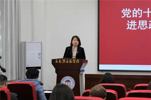 會上,段虹對十九屆六中全會精神作了全面深入的解讀,並就全會精神進思政課堂提出具體要求。段虹認為,黨的十九屆六中全會是一次具有里程碑意義的重要會議。全會審議通過的《中共中央關於黨的百年奮鬥重大成就和歷史經驗的決議》,內涵豐富,氣勢恢宏,是一篇閃爍着馬克思主義真理光輝的綱領性文獻。她指出,馬克思主義學院全體思政課教師負有積極宣傳貫徹黨的十九屆六中全會精神重大責任和光榮使命,全院教師要主動承擔起全會精神的學習宣傳、研究闡釋的責任;要切實推進全會精神進教案、進課堂、進頭腦,要「善用大思政」,及時將黨的百年奮鬥重大成就和歷史經驗融入到思政課堂,用心用情用力用專業知識講好每一堂思政課,引領廣大青年學生深刻理解中國共產黨百年奮鬥的重大成就和歷史經驗,賡續紅色血脈、樹立遠大理想,自覺肩負起「強國一代」的歷史責任和時代使命。