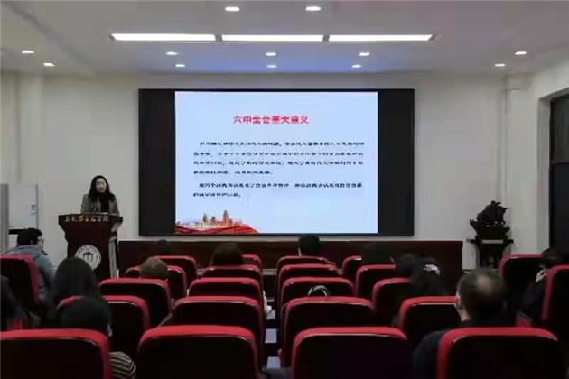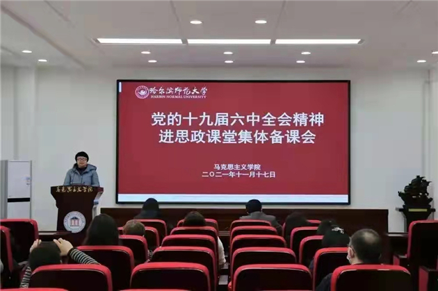 黨的十九屆六中全會是在黨的百年華誕及「兩個一百年」奮鬥目標的歷史交匯期召開的一次具有重要里程碑意義的盛會。為及時學習宣傳貫徹全會精神,哈師大馬克思主義學院於11月17日下午召開黨的十九屆六中全會精神進思政課堂集體備課會。院長段虹、黨委書記宋佳東、副院長白夜昕、思政部主任姜立紅參加備課會,中國近現代史綱要教研室、形勢與政策教研室全體教師參加會議。會議由白夜昕主持。