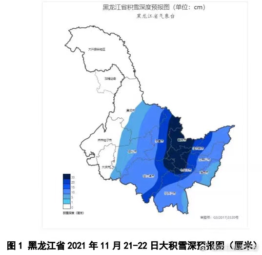 22日:黑河東部、伊春、哈爾濱東北部、鶴崗、佳木斯、雙鴨山西部、七台河、雞西西部、牡丹江北部有暴雪,其中伊春北部、鶴崗、佳木斯西部、雙鴨山西部有大暴雪,鶴崗局地有特大暴雪;黑河中部、綏化、哈爾濱西部、牡丹江南部有大雪,雙鴨山東部、雞西東部有中雨夾雪轉暴雪,其它地區有小到中雪(圖3)。