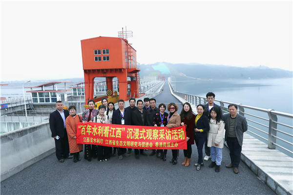 在峽江水利樞紐工程,觀察團一行先後參觀了樞紐大壩、泄水閘、電站廠房、魚類增殖站、生態魚道、廉文化園、水文化展示館等處,了解該工程建設管理的亮點與特色。