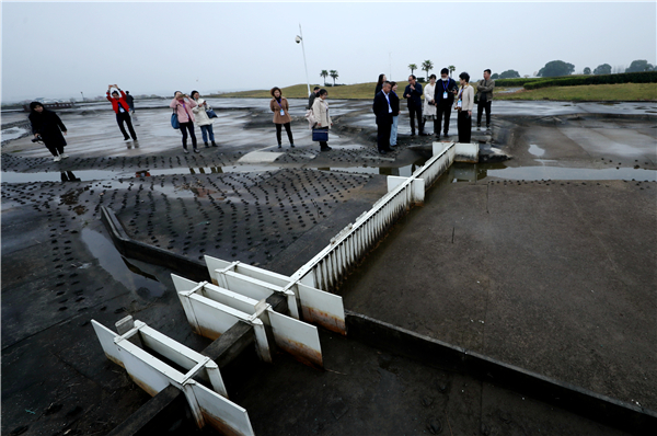 觀察採訪團在鄱陽湖模型試驗研究基地合影