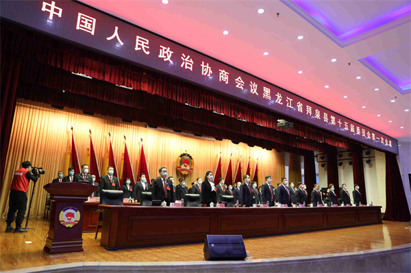 在雄壯的國歌聲中,中國人民政治協商會議拜泉縣第十五屆委員會第一次會議勝利閉幕。 (裴振萍 王克儉 高佳遇 張曉磊)