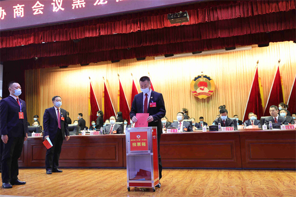 全體會議宣佈了候選人建議名單,總監票人、監票人名單。在檢查票箱、分發完選票後,與會政協委員認真填寫選票,並投出了自己神聖的一票。
