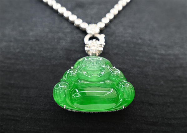 「老坑冰種正陽綠鴿子蛋翡翠鑽石鑲嵌大掛件,豪鑲,飽滿正莊,乾淨完美無暇,濃陽正勻,是頂級收藏之臻品;老坑玻璃種,帝王綠,佛公翡翠鑽石鑲嵌掛件,富有笑口常開,吉祥如意的寓意,價值近千萬!」記者在展會現場跟隨講解員賞析翡翠收藏臻品,據悉,此次翡翠文化藝術節在深珠寶保稅展廳匯聚展示了眾多頂級翡翠收藏臻品,有價值過億的和田玉籽料、多組頂級高冰帝王綠、正陽綠、冰紫套件精品等,更有走秀環節,由眾多模特佩戴呈現富有東方風韻的翡翠首飾,展現翡翠首飾的靈動風采。(記者 易小婧 通訊員 展源)