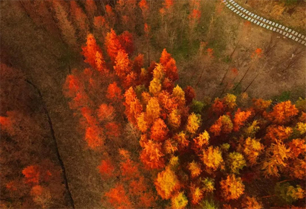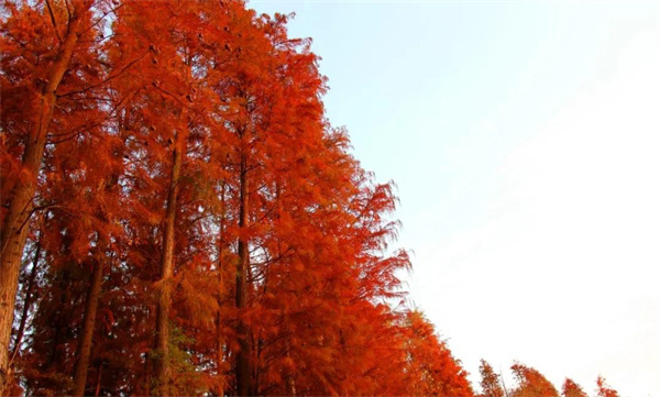 沒有鮮花一樣繁華絢爛的綻放,池杉們卻在陽光的激勵下,釋放出了自己別樣的魅力,置身其中彷彿是進入了童話世界一般。