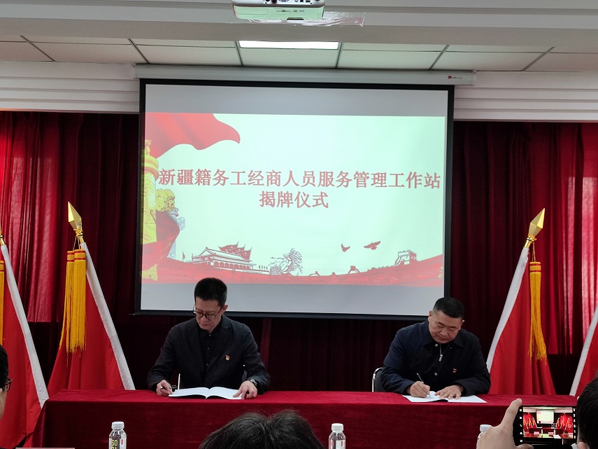 11月30日,瀋陽市首家新疆籍務工經商人員服務管理工作站揭牌啟動儀式在鐵西區凌空街道沈遼東路社區舉行。鐵西區委政法委副書記許化南與新疆籍駐遼工作組黨委書記王新軍現場簽署了共建協議。