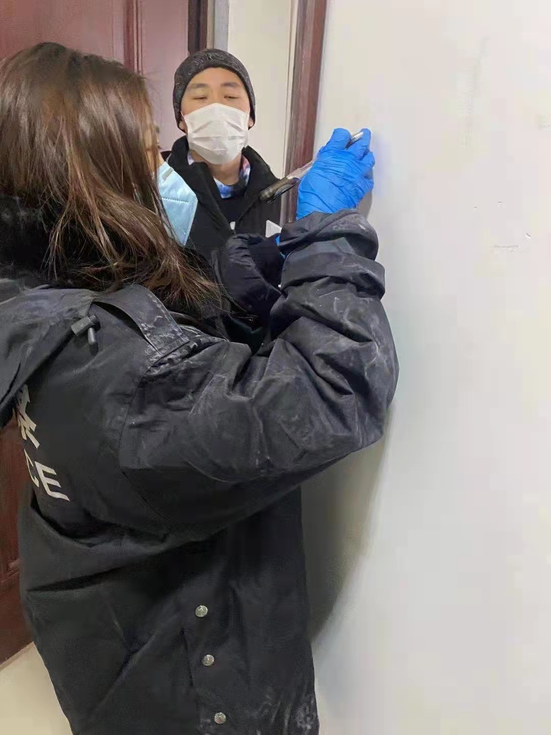 社區工作人員通過登門入戶方式對中高風險地區抵返松北區人員進行問詢排查