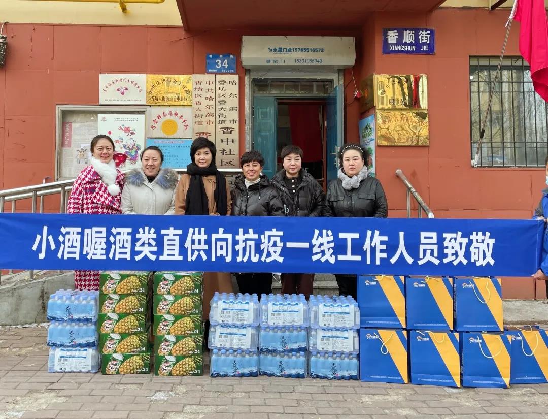 「冬將盡,春可期,願山河無恙,人間皆安」。當前,哈爾濱抗擊疫情吃緊,防控形勢嚴峻。一座城、一群人、一條心,連日來,在這場沒有硝煙的疫情戰中,哈爾濱「小酒喔」攜手其它愛心企業主動作為,接力公益,眾志成城,勇擔社會責任。「感謝大家在疫情防控工作中作出的努力和奉獻,你們辛苦了!」11月24日、26日、30日,哈爾濱小酒喔酒類供應鏈管理有限公司董事長時偉俠率先垂範、俠肝義膽、馬不停蹄,先後走訪哈爾濱市香坊社區、長江社區、新苑社區、香中社區及上東社區5個社區,將礦泉水、進口飲料、茶葉等愛心物資送到社區防疫一線工作人員手中,讓這個冬天不太冷,以實際行動阻擊新冠疫情,彰顯抗擊疫情貢獻巾幗力量。