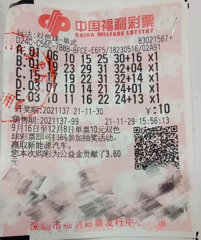 12月1日,一位小伙子獨自一人走進了深圳福彩服務大廳,原來他是雙色球第2021137期一等獎得主王先生(化名),他憑一張10元單式票,中得1注一等獎,獲得獎金642萬多元,這張彩票出自龍崗區龍城街道五聯社區連心路98號83021587投注站。