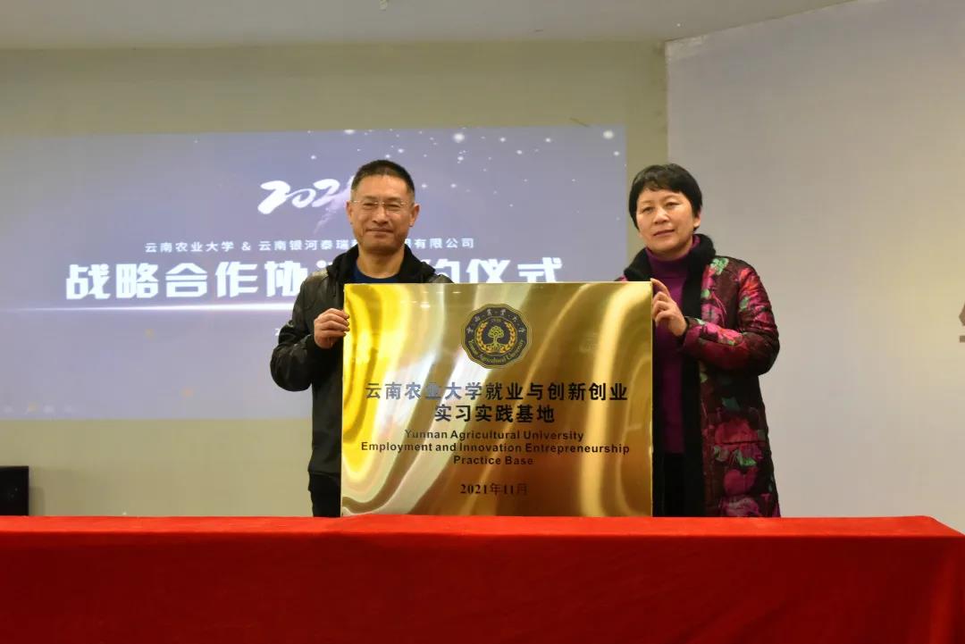 雙方領導發言後,現場舉行了戰略簽約,並由雲南農大黨委書記黎素梅給銀河泰瑞集團授牌。