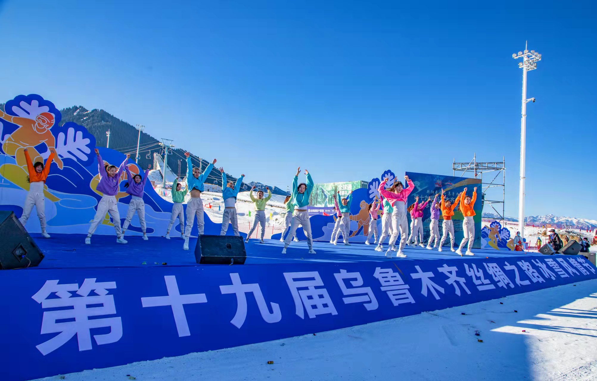 當日,「相約冬奧·冰雪疆來」第十九屆烏魯木齊絲綢之路冰雪風情節開幕式和「驕陽看雪 烏魯木齊」詩音畫烏魯木齊文旅活動在絲綢之路國際度假區正式奏響。