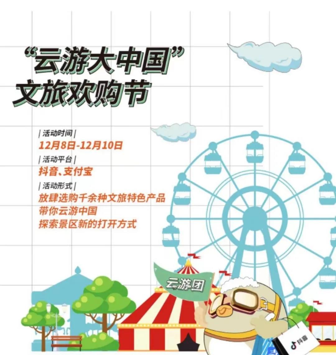 (一)大會將於12月8日至10日在抖音“中國文旅直播大會”官方直播間開展“雲遊大中國”文旅歡購節活動,眾多景區將參與連麥,共同喊話文旅直播,分享美景、美食、美物,同築文旅直播新平臺。屆時也將會有很多文旅產品特享直播優惠哦!