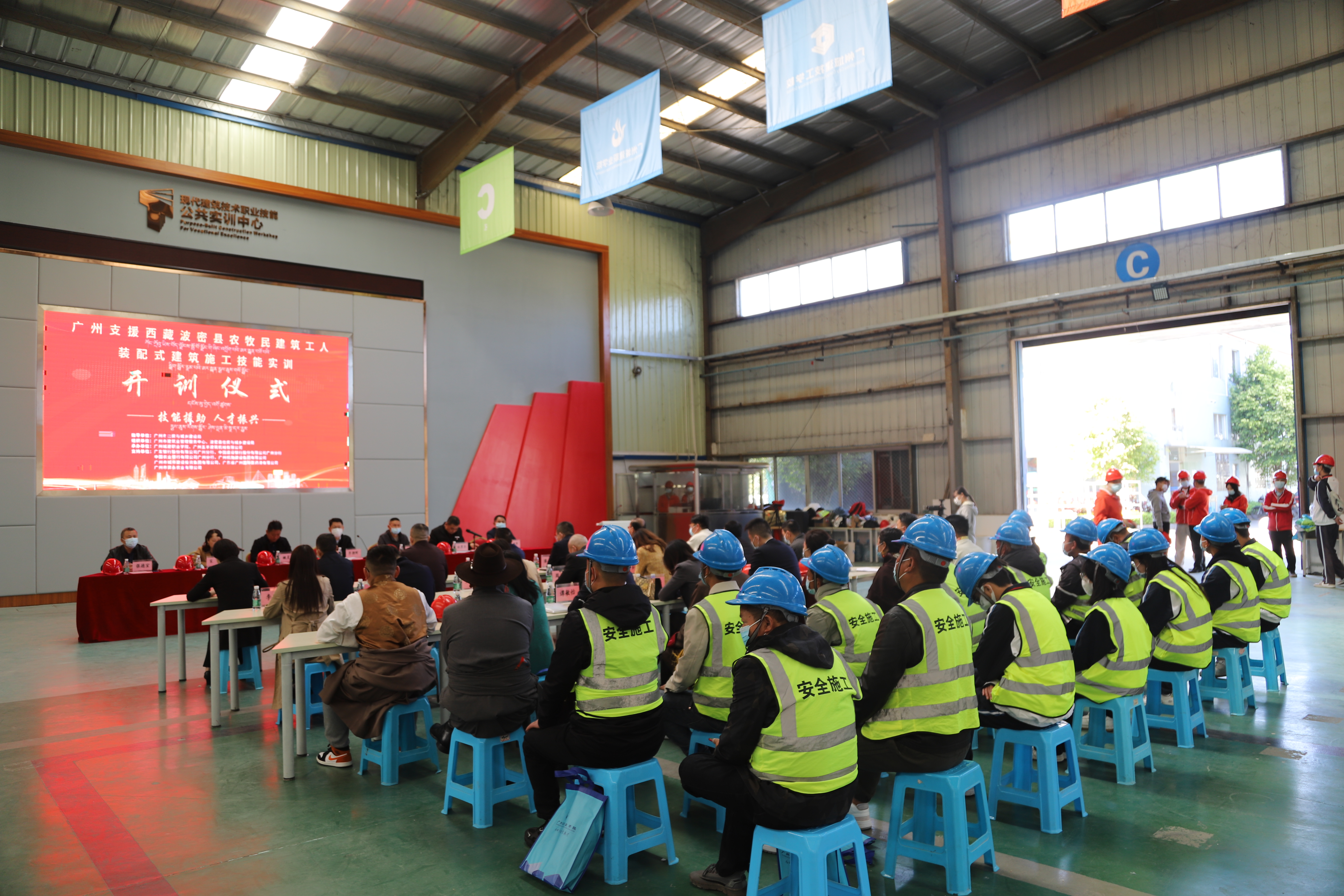 廣州市住房和城鄉建設局副局長李朝暉、廣州市建築業管理服務中心主任宋丹、廣發銀行股份有限公司廣州分行行長江友青、西藏波密縣副縣長姜耀、廣州市住房和城鄉建設局建築業管理處處長林冀東出席了當天的開訓儀式。(記者 黃裕勇 通訊員 許鋒 圖 謝宗志)