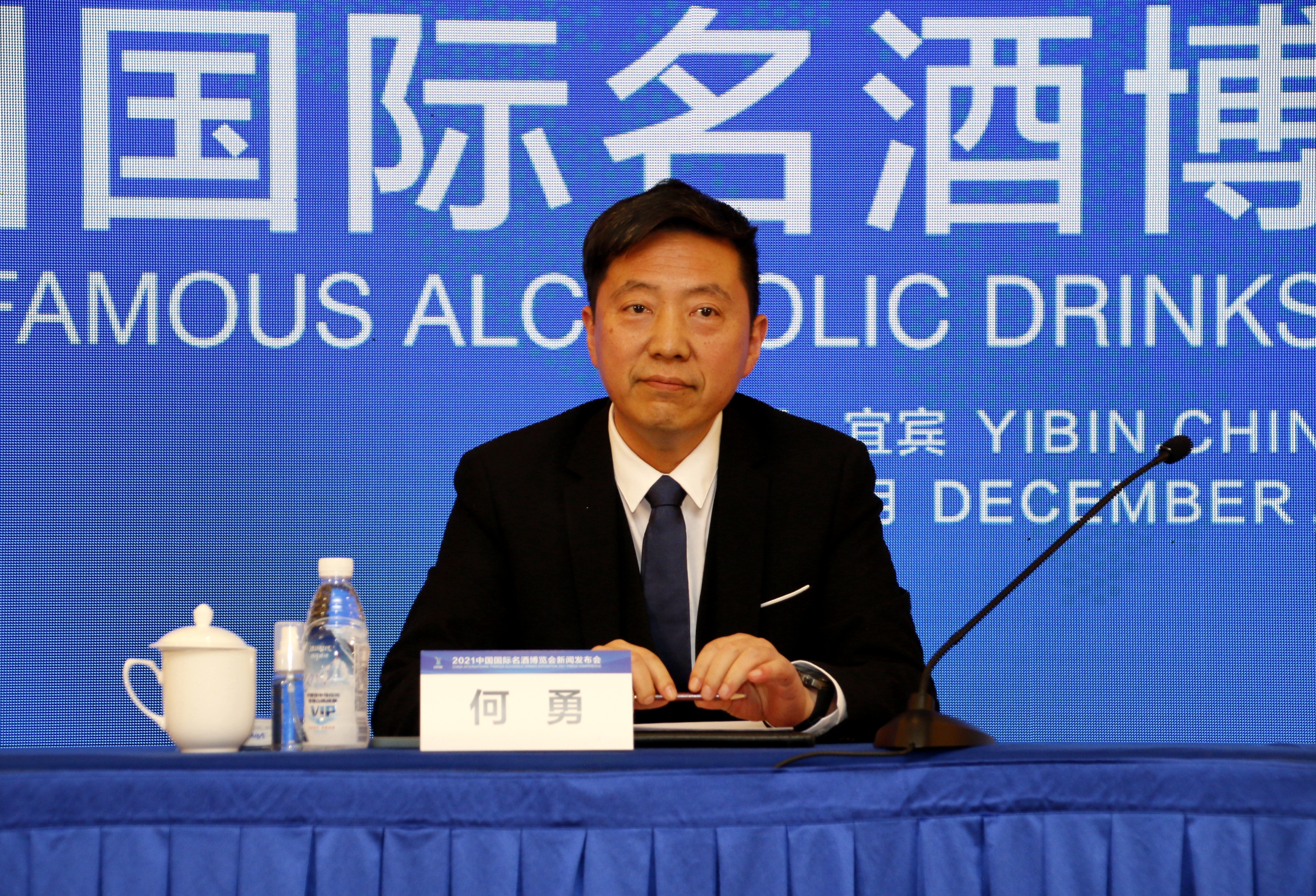 中國酒業協會秘書長何勇在新聞發佈會上講話