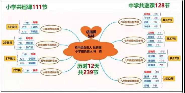 本學期團隊巡課共6555節,覆蓋每一所學校每一個學科。團隊巡課強化對教師授課重要環節的監督,促進了教師線上授課的嚴謹性和專業性。