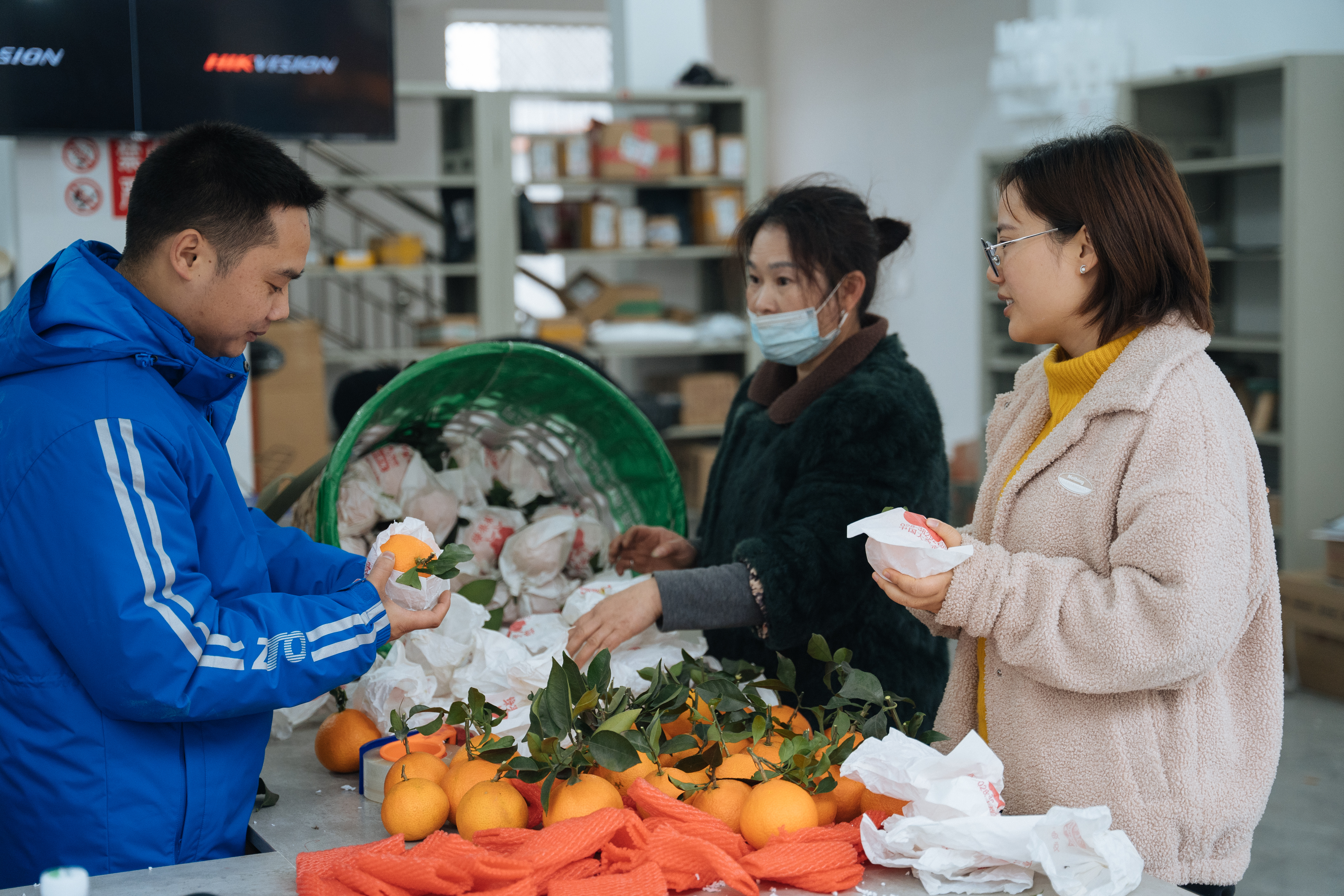 張富熔說,選擇回到家鄉賣柑橘,當初的想法也比較單純。一方面自己的家鄉眉山是全國重要的晚熟柑橘產區,「眉山春橘」品牌享譽全國,產量規模大,而且生態無公害,口感好、品質高;另一方面,今年5月自己回家後,偶然發現村裏有了快遞超市,萌發了正好可以通過網絡出售自家的柑橘,同時也能帶動父老鄉親們,把村裏的果子銷售出去。「我覺得能夠把我們村的果子銷售出去,讓大家能夠品嘗到我們的一個無公害的果凍橙也好、耙耙柑也好,我覺得是一件非常幸福的事情。」張富熔興奮地說。