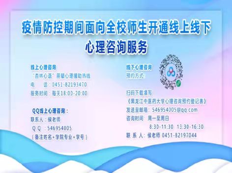 學生工作部(處)拓寬學生心理健康諮詢途徑,面向全校師生開通線上線下心理諮詢服務,幫助大家更好地應對疫情帶來的心理應激反應,共同做好心理防護。