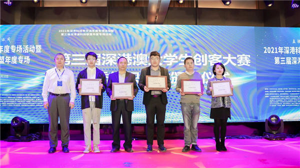 2021年12月10日下午,由深圳市科學技術協會指導、深圳市科技交流服務中心主辦的第三屆深港澳大學生創客大賽在前海深港基金小鎮路演中心精彩落幕。來自深圳大學、南方科技大學、香港中文大學(深圳)清華大學深圳研究生院、北京大學深圳研究生院、哈爾濱工業大學(深圳)、深圳市創客協會等眾多高校、協會共50支隊伍報名參與本次活動,最終選挑選出10支創客團隊參與本次線下決賽路演。第三屆深港澳大學生創客大賽圍繞“逐夢鵬城,智創未來”為主題,通過創客作品展示,搭建創客與資本、創客與市場的溝通平臺。