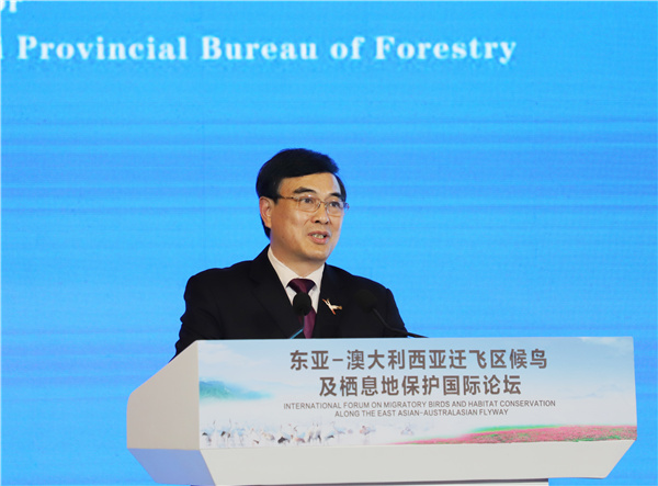 邱水文在致辭中表示,近年來江西省以全面推行河長制、湖長制、林長製為抓手,紮實推進國家生態文明試驗區建設,堅決打好污染防治攻堅戰,在全省重點水域實行為期10年的全面禁漁,深入實施鄱陽湖濕地生態效益補償項目,不斷加強鄱陽湖濕地生態保護修復和沿湖地區環境整治。舉辦此次論壇,旨在圍繞濕地保護,候鳥遷徙及棲息地保護等方面進行深入研討交流,碰撞智慧火花,為共同守護好候鳥賴以生存的濕地生態環境貢獻智慧和力量。