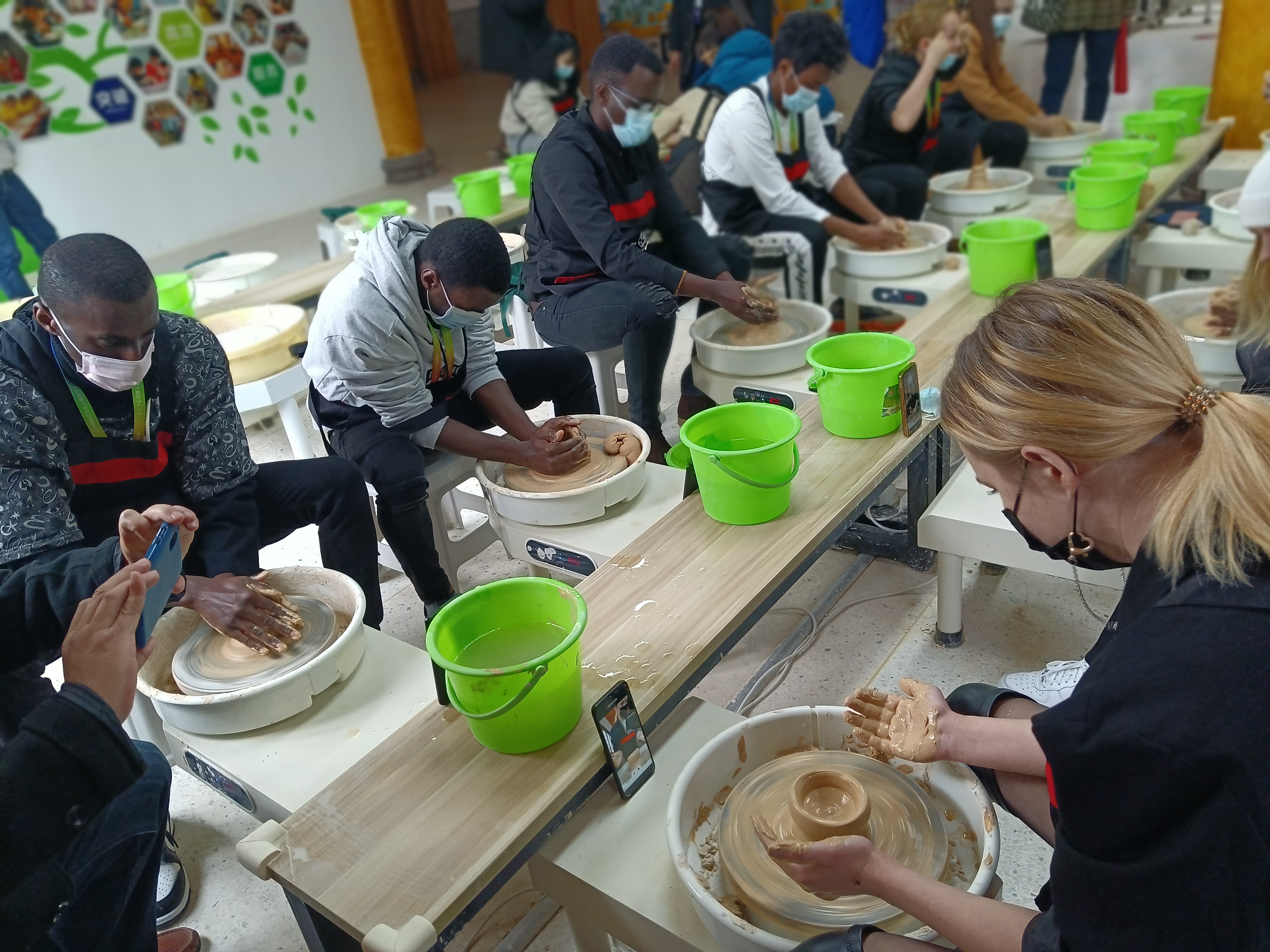 外國留學生在體驗手工制瓷工藝