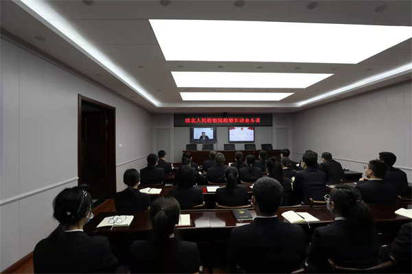 劉慶峰檢察長從優化營商環境的優化營商環境的背景及意義、優化營商環境與檢察機關的關係、制約黑龍江省營商環境因素、區域營商環境振興發展及檢察機關的辦案實踐、全國檢察機關優化營商環境典型案例、檢察機關服務優化營商環境需克服的問題、完善檢察機關優化營商環境的路徑等七個方面,全面、系統、生動的為全體幹警講解了在我國全面依法治國的大政治環境下,檢察機關服務優化營商環境已經成為重要因素和關鍵環節。