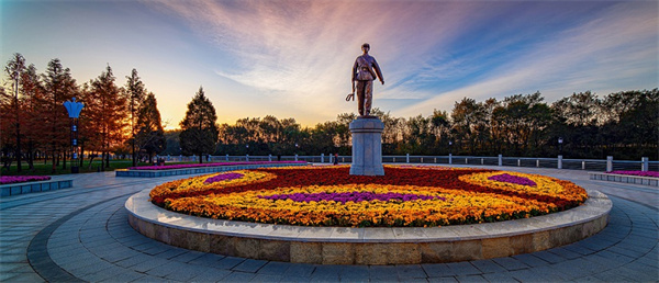 杜鵑廣場 張保國攝 杜鵑廣場——杜鵑花是丹東市花,盛開的紅杜鵑寓意守護家鄉、頑強自信,熱烈奔放、欣欣向榮,契合「英雄城市」和「英雄人民」的形象。