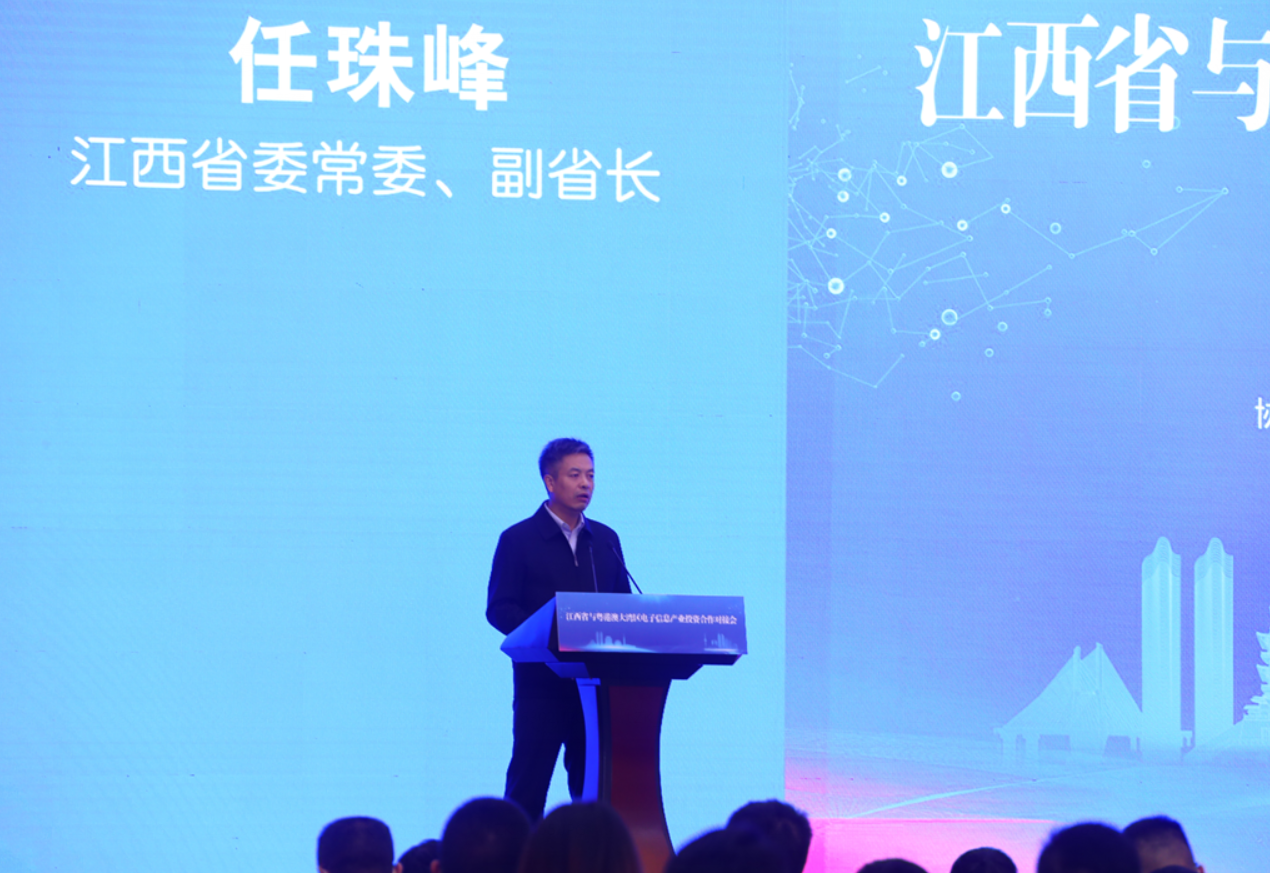 12月16日上午,江西省與粵港澳大灣區電子信息產業投資合作對接會在深圳召開。江西省委常委、副省長任珠峯出席並講話。