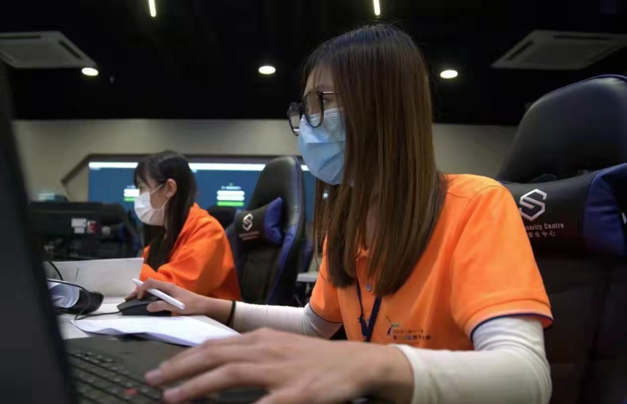 網絡安全的比賽現場如同一間普通的辦公室,卻堪比「不見硝煙的戰場」,雖說是「95後」代表,可區順怡已經不是第一次參加比賽,面對高手如雲的賽場,年輕的女生們顯得從容不迫。