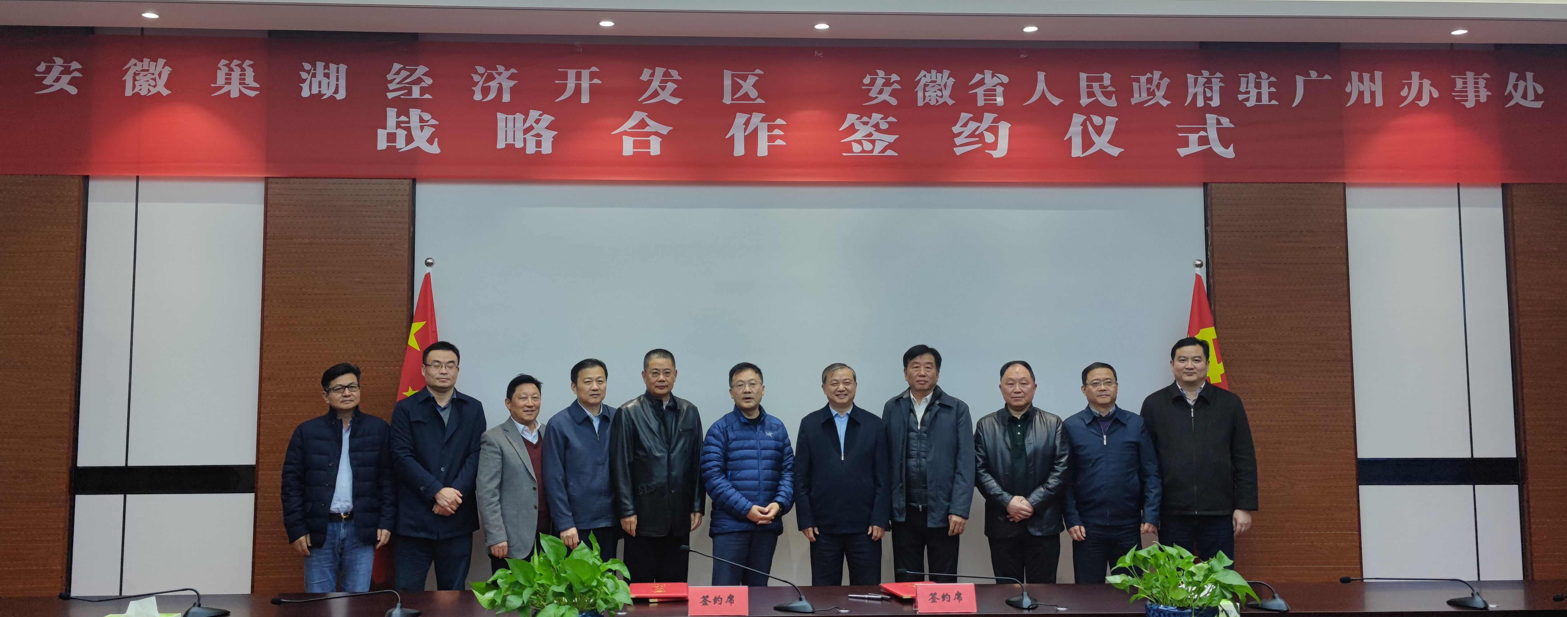12月17日下午,安徽巢湖經開區黨工委書記、管委會主任黃衛東接待由安徽省駐廣州辦事處黨組書記、主任鄭訓練帶隊的粵港澳大灣區企業家一行,雙方就開展「雙招雙引」合作進行座談交流,並簽訂戰略合作框架協議。