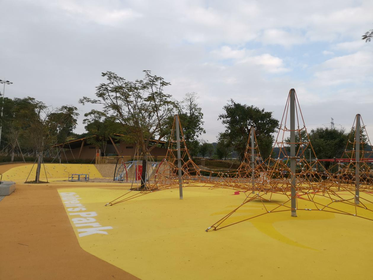 兒童遊樂場則位於外國語學校及紅坳保障房住宅小區的公園入口區,佔地1200餘平米,場地採用現澆彩色防滑耐磨EPDM橡膠,橡膠圖案生動有趣,場地內設有多套高品質的兒童遊樂設施,主要包括攀爬網、攀爬牆、滑梯、鞦韆等新型無動力遊玩設施,父母和孩子們可以在此探索多種遊玩方法。