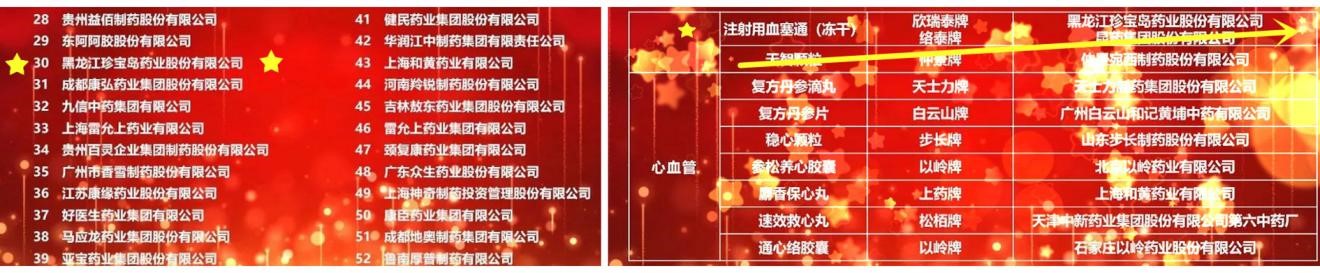 在剛剛結束的「中國中藥協會中藥產業信息發佈會上,2021中成藥企業TOP100榜單發佈,珍寶島藥業位列前30強」。同時,在會上發佈的「2021臨床價值中成藥品牌榜」中,珍寶島藥業的兩款產品注射用血塞通(凍干)及舒血寧注射液榜上有名。