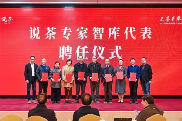 年會現場“說茶”向福建省現代茶產業技術體系首席專家高峰,中國茶道表演藝術家吳雅真,福建省農林大學茶學系教授、博導金心怡,福建農林大學園藝學院茶學教授、福建省高校重點實驗室主任葉乃興,福建農林大學園藝學院副院長、教授、博導郭玉瓊,福建省茶葉品質檢測中心站原站長陳金水,福建省農科院茶葉研究所原所長、研究員陳榮冰,福建省農科院茶葉研究所原副所長、教授級高級農藝師張方舟等專家代表頒發聘書,構建“說茶”專家智庫,共同為行業輸送更多有趣有料有用的專業內容。(張傑)