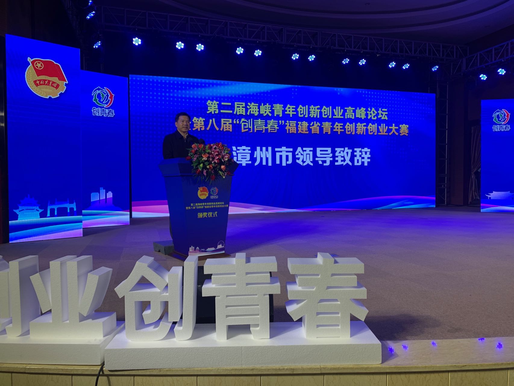 12月21日,第二屆海峽青年創新創業高峰論壇暨第八屆「創青春」福建省青年創新創業大賽頒獎儀式在福建漳州市長泰縣舉辦。共青團福建省委副書記李騰、漳州市委副書記黃水木等領導嘉賓及獲獎項目團隊負責人參加活動。