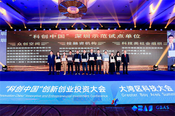 當天晚上,在「科創中國」創新創業投資大會成果發佈典禮上,全國百強、全國十強、六大行業TOP5集體亮相,專案技術領先、模式創新、產業層次高、綜合競爭力強,風采充分展示。本屆「科創中國」創新創業投資大會由中國科協、深圳市政府指導,中國科協企業創新服務中心、廣東省科學技術協會、深圳市科學技術協會、龍華區人民政府、深圳市創新投資集團有限公司共同主辦,深圳產學研合作促進會、深圳市科技交流服務中心等單位承辦,自今年3月1日啟動以來,面向新一代資訊技術、數字經濟、高端裝備製造、生物醫藥、新材料、綠色低碳等六大行業領域,以深圳為中心,分別從北京、上海、蘇州、杭州、武漢、濱州以及海外等分會場徵集7333個專案,與上屆相比增長64%,實現了層級更高、跨度更廣、規模更大、注重實效的辦會效果。本次典禮上,除對優勝專案進行了隆重的頒獎儀式之外,還為優秀合作單位與組織單位、雙效青創青少年專案進行了頒獎;同時,會上還為「科創中國」深圳示範試點單位頒發了榮譽證書並公佈了「科創中國」創新創業投資大會創新榜單。