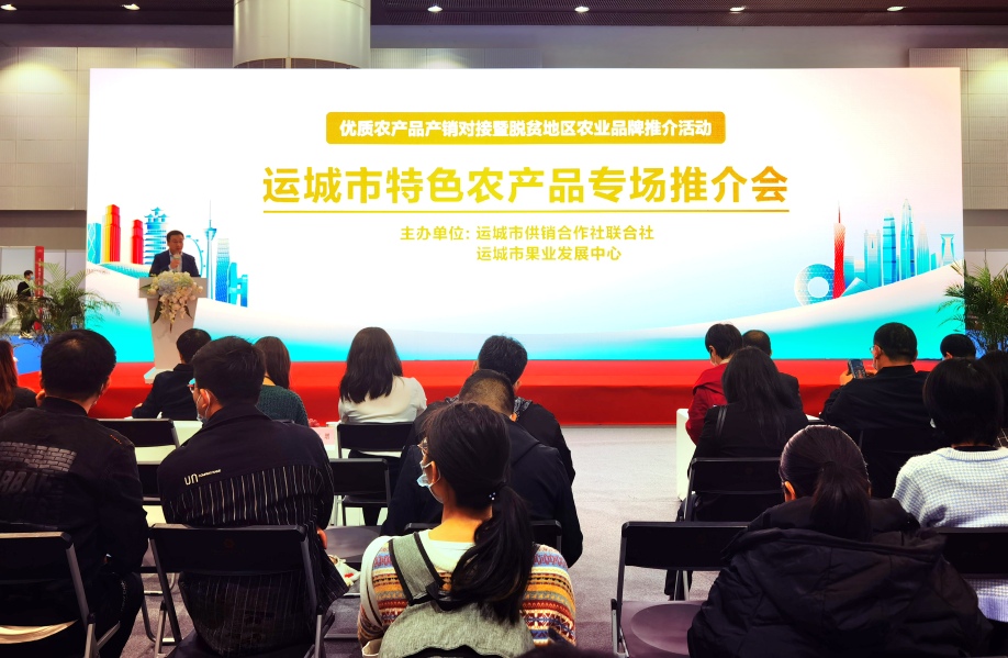 12月24日,2021年第十九屆中國國際農產品交易會(國際農交會)產銷對接暨脫貧地區農業品牌推介活動在廣州中國進出口商品交易會展館舉辦,來自關公故里的「運城麵粉」「運城蘋果」「運城蔬菜」三大區域公用品牌在廣交會展館A區山西運城展區展出並舉辦專場推介會,讓運城特優農產品在此次國際農交會上閃亮登場。