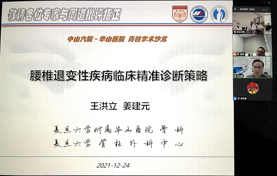 12月24日,廣州中山大學附屬第六醫院脊柱骨科聯合上海復旦大學附屬華山醫院骨科,在中大附屬六院舉辦了"2021年中山六院-華山醫院脊柱學術沙龍"活動,活動邀請了廣東省內外脊柱骨科專家學者圍繞腰椎退變性疾病診斷與治療新理論、新技術、新進展,特別是疾病臨床精準診斷實用技術推廣與難點處理,進行學術交流及病例討論。